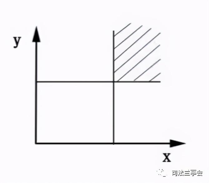 从图1可见,如果一个标准同时要求达到两个定量要素,则其限定范围呈矩形扩张式。回到警察盘查权行使的两个条件关系模式,如果同时要求可能的危害性大和危害大的可能性高,那么该关系模式所能涵盖的盘查范围就如下图所示,见棱见角,泾渭分明。结局就是,可能的危害很大,但可能性一般的,也不能盘查;可能性很高,但可能的危害一般的,也不能盘查。此中条件关系模式下的盘查范围仍然过于狭隘。