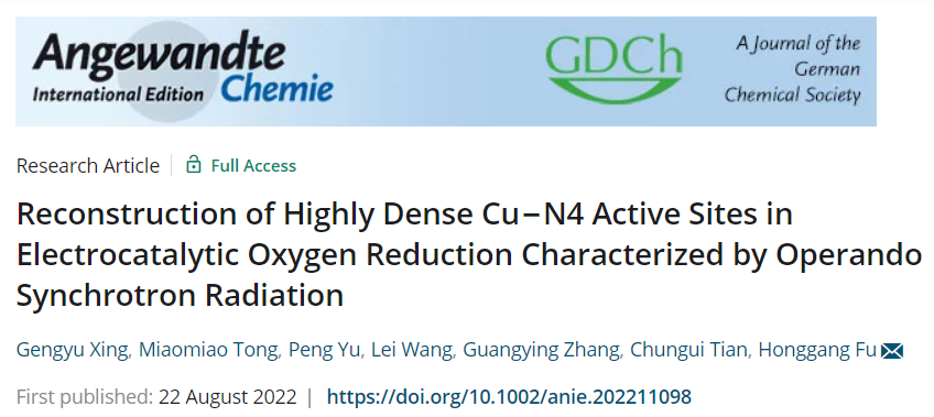 图5 原位同步辐射探究真实电化学环境中活性位点的起源Cu−N−C/GC的结构变化