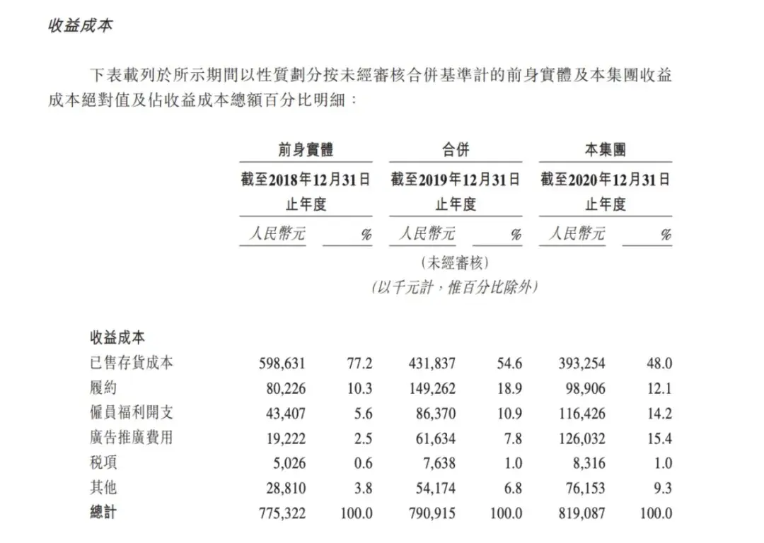 作为电商代运营公司,营销能力是至关重要的。但近两年来,悠可的营销成本正在飞速上涨。按合并后的财务报表口径,2019年,悠可的广告推广费用为6160万元,2020年,该项费用升至1.26亿,占收益成本的比重直接翻倍。