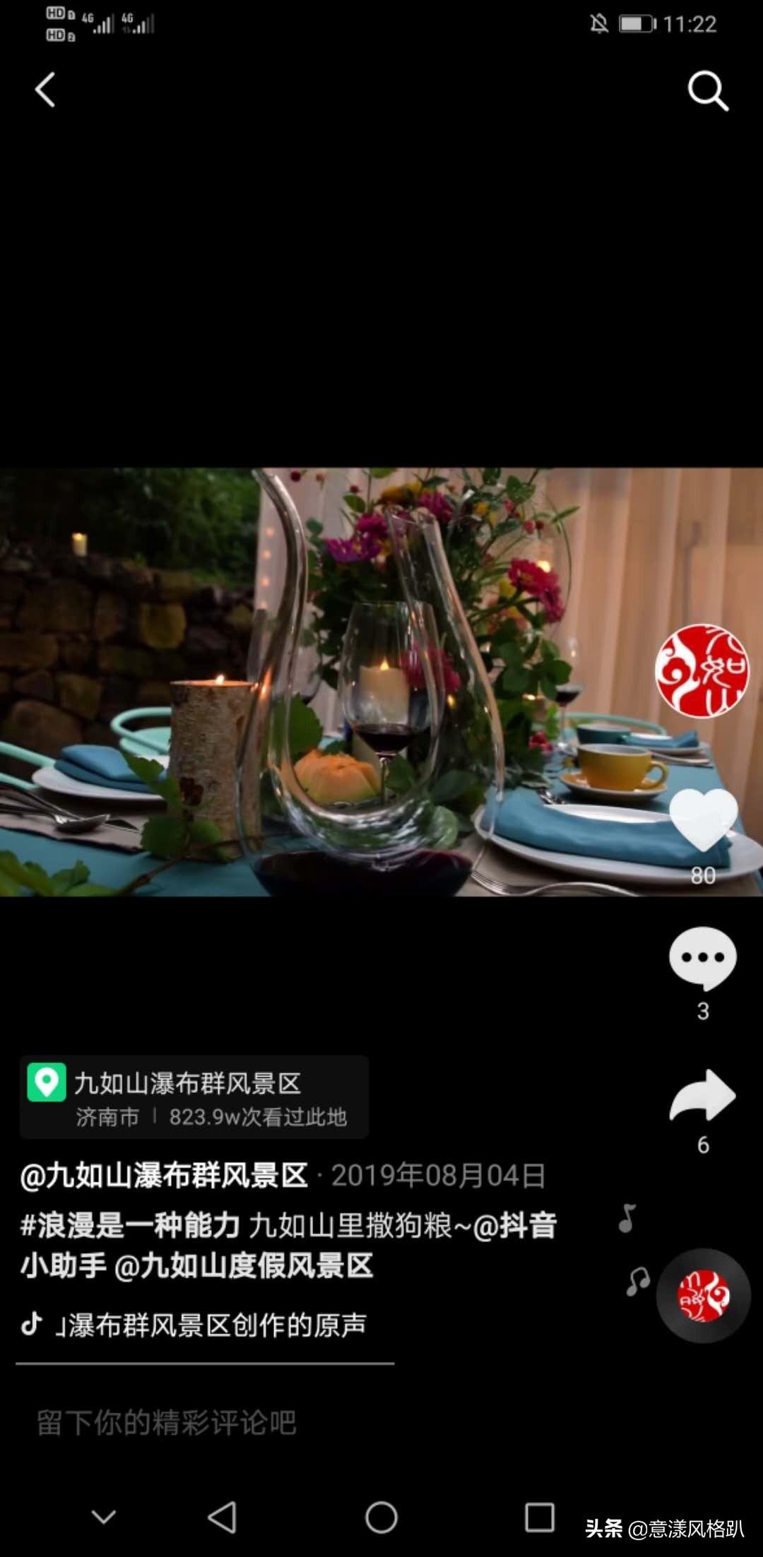 当然九如山的抖音视频里也有不错的案例,比如一对异国情侣的视觉看九如山的视频,要知道恋爱中的风景总是别样的,而事实证明这样的视频内容评论和转发的也是比较多的。这就是人物故事性及内容带来的冲动观感及互动参与性。我们去野奢帐篷,我们去走木栏匝道,我们立于瀑布前,都是与心爱的人才会有感觉,这就是为什么要做场景式融入,这点上,我们确实需要向装修公司及电器品牌学习。