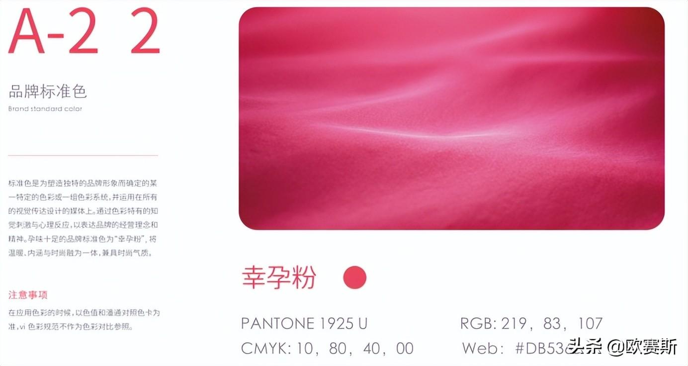 孕味食足超级色彩战略:母婴行业品牌众多,红色、橙色、黄色、蓝色、粉色、绿色等各种颜色都有人用,但孕味食足前期的色彩色系选择是正确的,但略失高级感,我们在色彩上做了进一步升级并为之取名:“幸孕粉”。