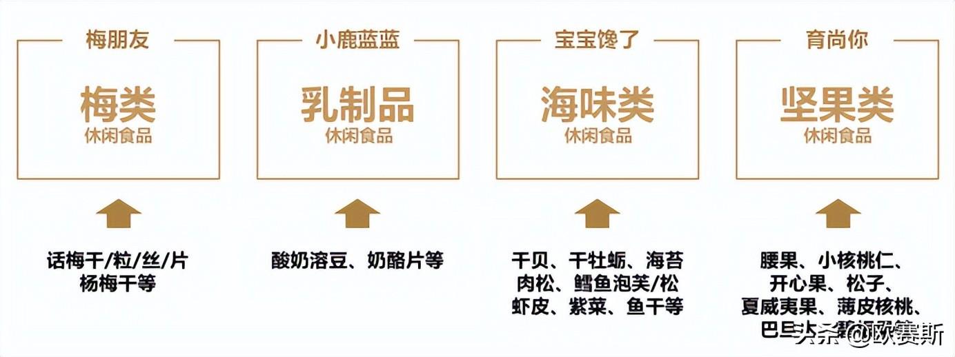敌情二:梅类、乳制品、海味、坚果,占据休闲食品不同子品类