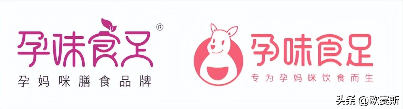 孕味食足之前的超级符号——品牌logo从审美角度看略微有些过度设计,已经不符合当下互联网品牌的追求简约的设计趋势。logo中的字体布白不均匀,笔画变形过度夸张,影响识别,而logo用色偏暗,活力不够。整体logo 已经不符合新消费人群的审美,承载不了全新的品牌定位。