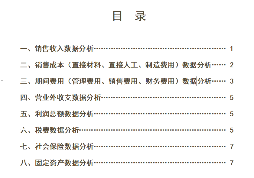 财务数据分析报告目录