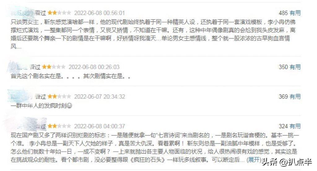 无论是人设还是剧情上,可以说靳东和童蕾都没有把故事诠释好,所以CP感也谈不上,一半以上的观众打出1星,并不冤枉。