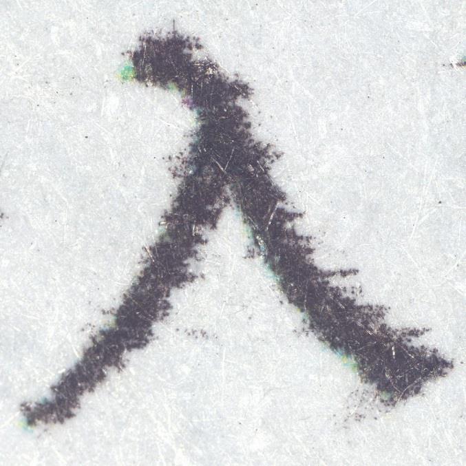 图2 检材-“办理完毕离职”中“完”字 显微镜检验图片