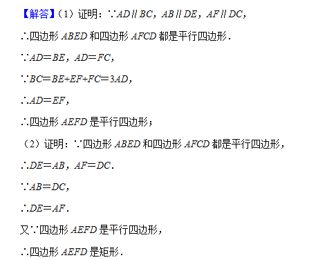 【分析】(1)首先证明四边形ABED和四边形AFCD都是平行四边形,证得AD=BE,AD=FC,从而AD=EF,证明四边形AEFD是平行四边形;