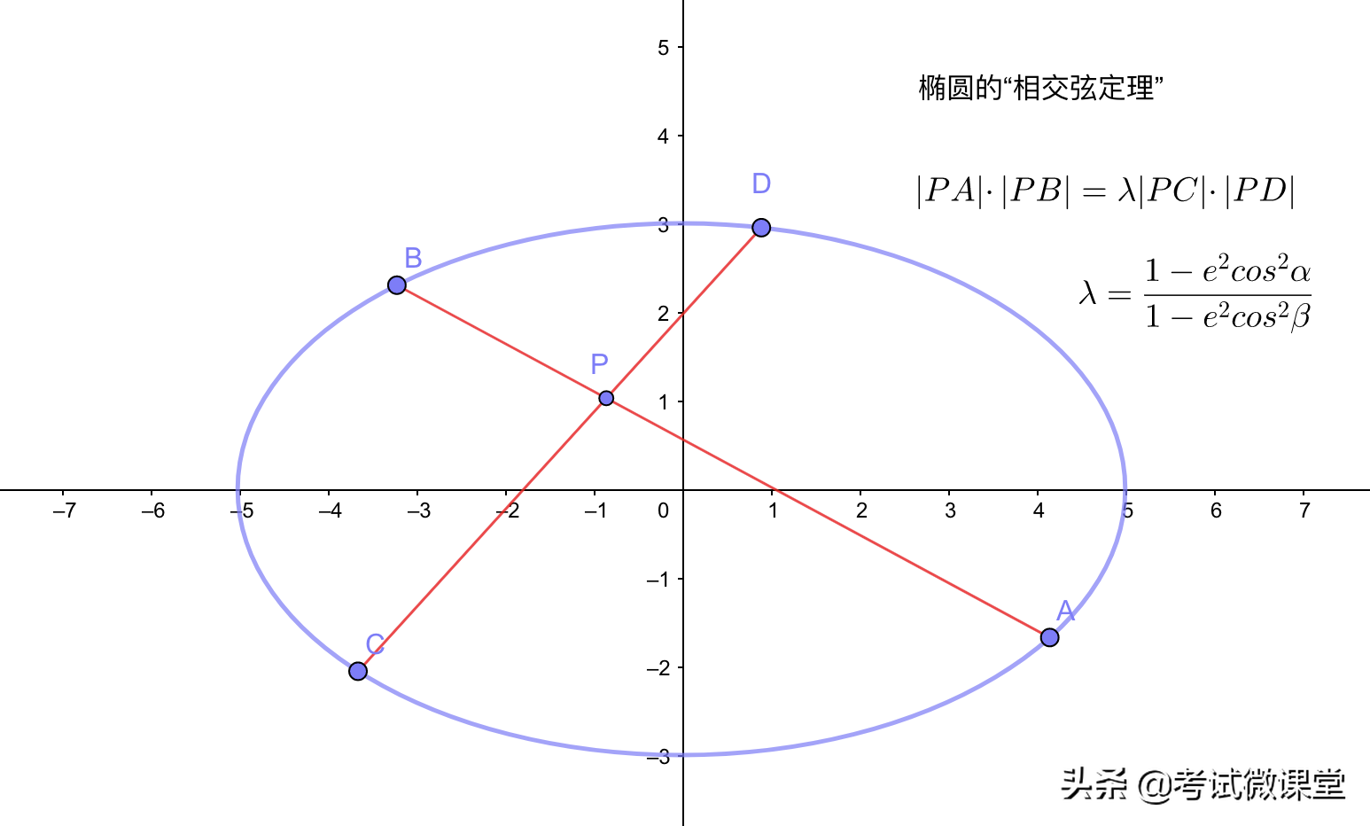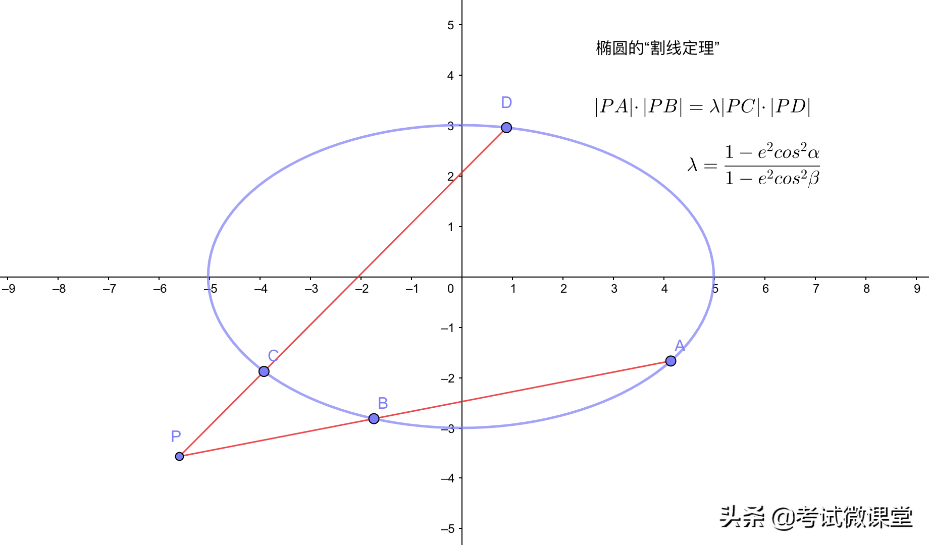 特别指出,当两条直线的斜率互为相反数的时候,即倾斜角互补的时候,此时λ=1,就变成了和“圆幂定理”一模一样的情形!
