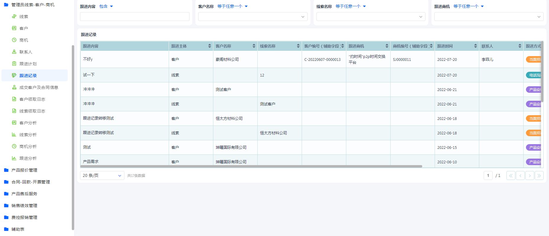 所有的客户、线索、商机、联系人、跟进记录、跟进计划信息管理员在此分组查看,除上述信息还可查看成交客户数据、线索及客户的领取日志、客户线索等主要数据的分析报表。