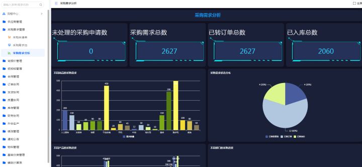 该模块用于收集、管理企业内部的采购需求及监控各采购需求的处理进度,当采购申请审批完成需求信息会自动到采购需求池。