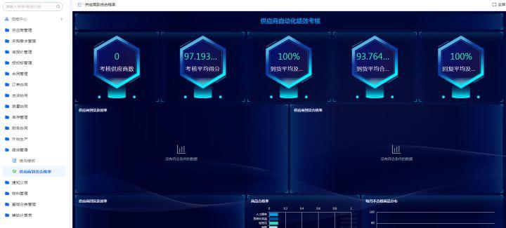 企业可根据交货及时率、品质合格率、回复及时率制定绩效模板,通过视图计算各供应商的考核分数,对供应商进行评级、整改优化。