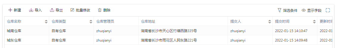 通过在线表单详实地记录商品信息表和仓库信息表,方便商品出入库时直接调用相关信息数据。