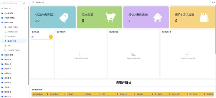完善物料档案,记录物料的资质、价格等信息;对每次核价的信息进行记录,汇总历史物料价格,在数据看板中查看价格趋势,为采购人员提供决策参考。