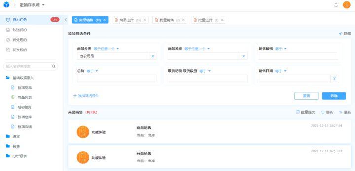 进销存板块包括采购、销售、库存、流水账、移动端扫码等多种功能应用,能够借助在线表单、报表等多种呈现形式,实现货品进销存的各个环节均有迹可循,便于实时查看、调用相关数据信息。