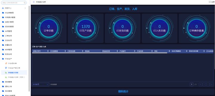 外协供应商汇总领料明细,发起领料流程,企业审核通过后将物料发货给供应商,外协供应商定期提交生产报工情况,与企业进行信息互通,通过报表的数据汇总,企业和外协供应商可以在分析报表中监控外协订单的完成情况。