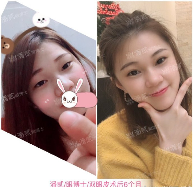 美女眼窝深,肿眼泡,这类眼睛基础要做好其实并不简单,因内眼角同时过大,没有特意追求开扇形外观,术后双眼皮介于平扇形和小平行之间。