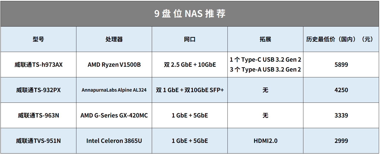 9 盘位是威联通的独家盘位设计,目前只有图上这 4 款机型。首先给出结论: