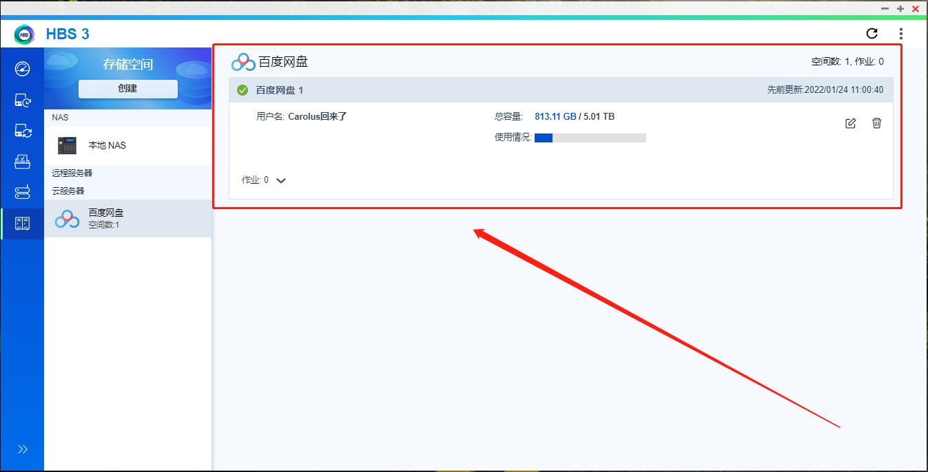 不管大家做什么操作,第一步请先把HBS3进行更新到最新版本。其次在HBS3里面打开存储空间,创建百度网盘服务器。