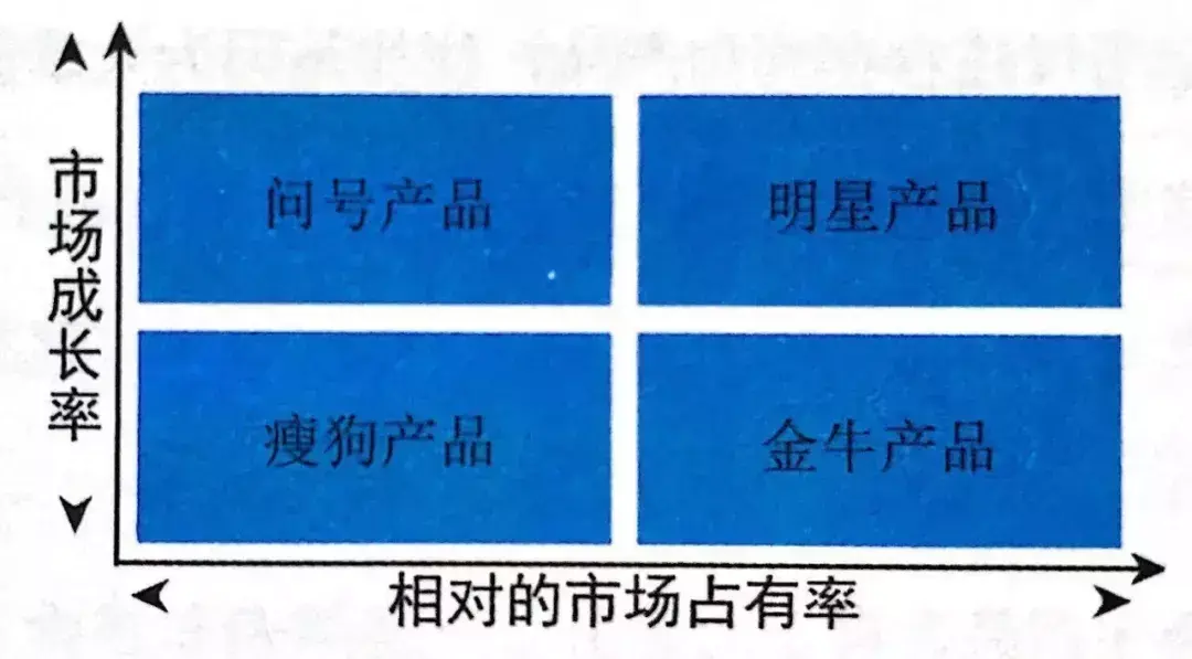 波士顿矩阵是美国著名管理学家、波士顿咨询公司创始人布鲁斯·亨德森提出的,是一种常见的分析企业产品的方法;从产品的市场增长率、份额两方面入手,分为问号产品、明星产品、金牛产品、瘦狗产品四种类型。
