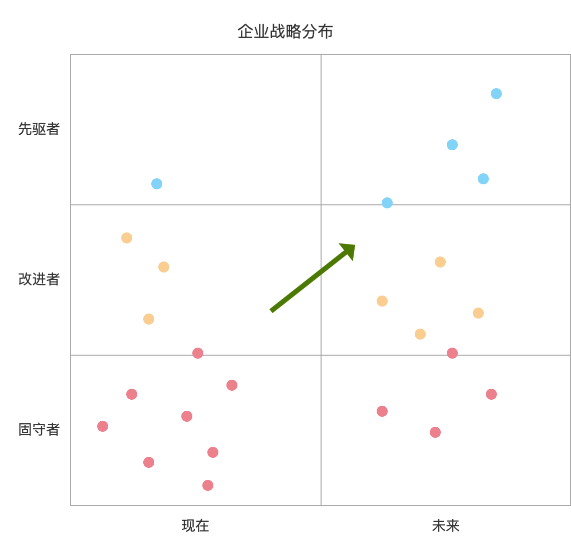 如果企业大部分业务都在固守区,则容易陷入竞争下小幅改进的漩涡。业务向先驱者倾斜,是获得未来增长的有效战略分布。