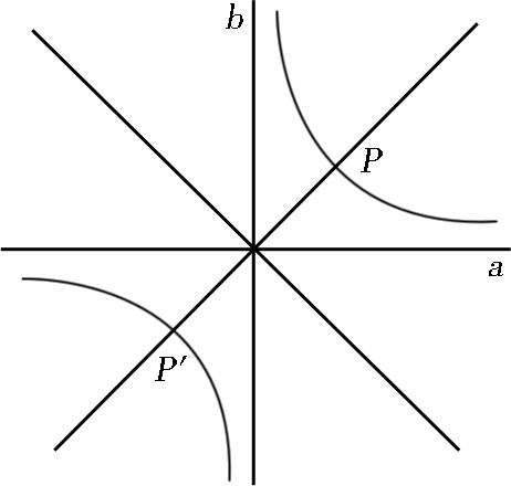很显然,这两条曲线有一个交点P在第一象限。我们应该特别注意,第一条曲线的一条分支沿着θ=1π/4和θ=3π/4的方向离开原点;第二条曲线的一条分支渐近地向着θ=0π/4和θ=2π/4的方向移动;交点在最后两个方向θ=0和θ=π/2之间。这个交点的a和b的坐标是方程z^2-4i=0的一个解的实数部分和虚数部分。假如我们最初的多项式方程是三次而不是二次,则一条曲线的一根分支就会趋近于θ=1π/6和θ=3π/6的方向,另一条曲线就会趋近于θ=0π/6和θ=2π/6的方向。在每一种情况下这些分支都是连续的,因此,它们一定要相交于θ=0至θ=π/3之间的某个地方。