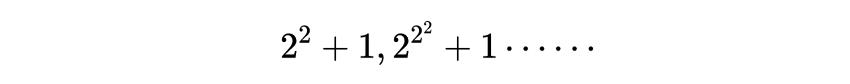 我们已经知道,对于n=5、6、7、8和9来说,费马数不是素数,但看来很有可能,有且只有5种可以用直尺和圆规作出的边数为素数的正多边形,其中两种在古代已经知道,另外三种是高斯发现的。有一个高斯很赞赏的人,就是柏林的数学教师费迪南德·戈特霍尔德·爱森斯坦,他补充了一个关于素数的新猜想,当时,他大胆提出了一个迄今为止尚未得到证明的想法:形如