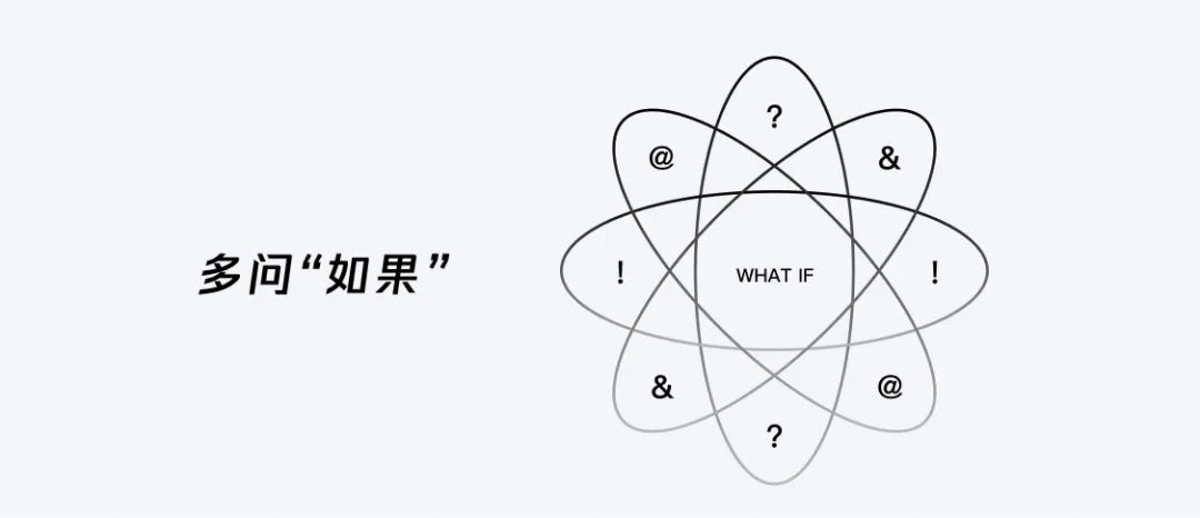 在发散的过程中要敢于想象发散,才能带来突破式创新。当我们想要解决问题的时候可以首先大胆发问、设想出“如果”的场景后,再去考虑实现该场景所需要用到的技术;也可以从技术出发,畅想落地场景的“如果”。