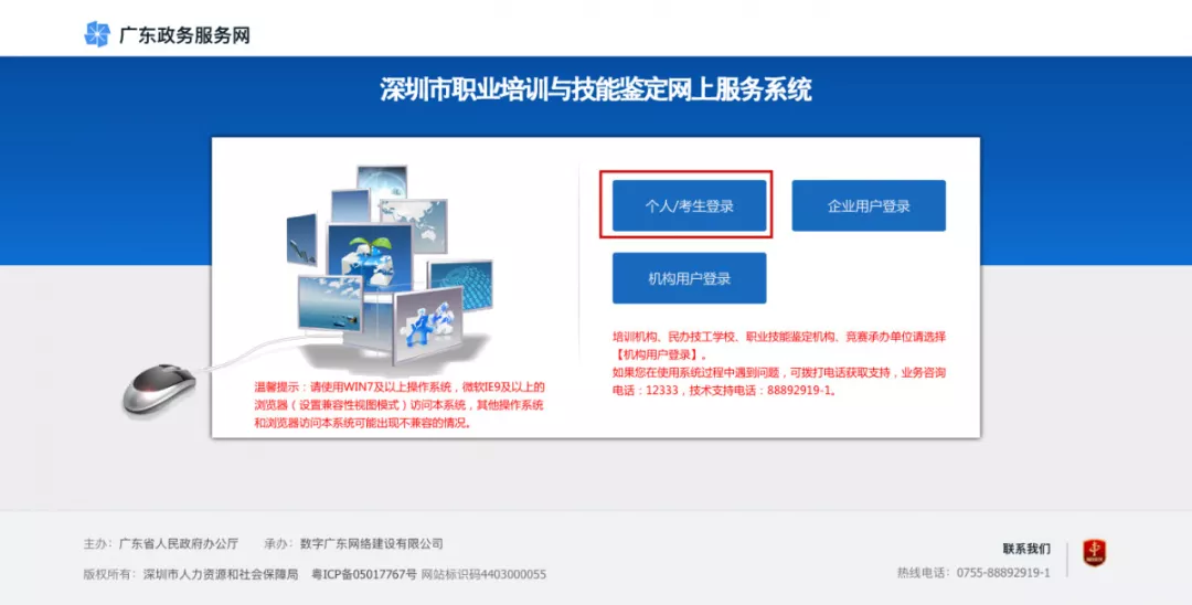 2、点击“个人/考生登录”;