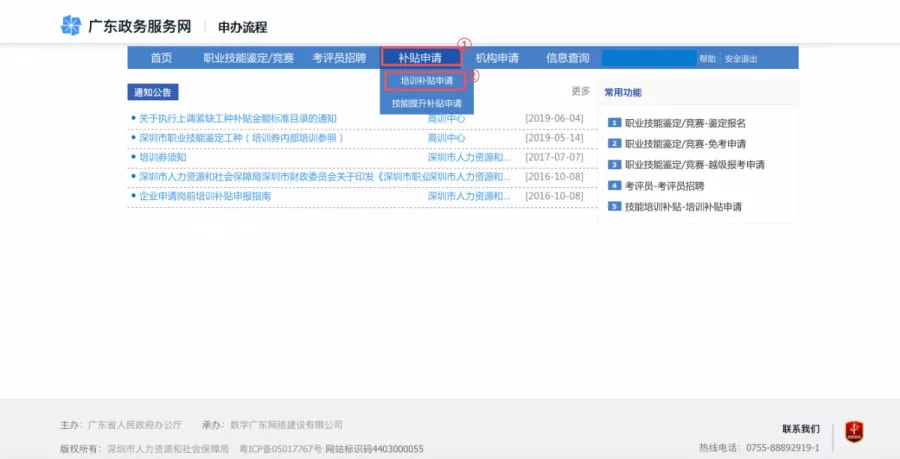 4、点击“技能培训补贴”→再点击“培训补贴申请”