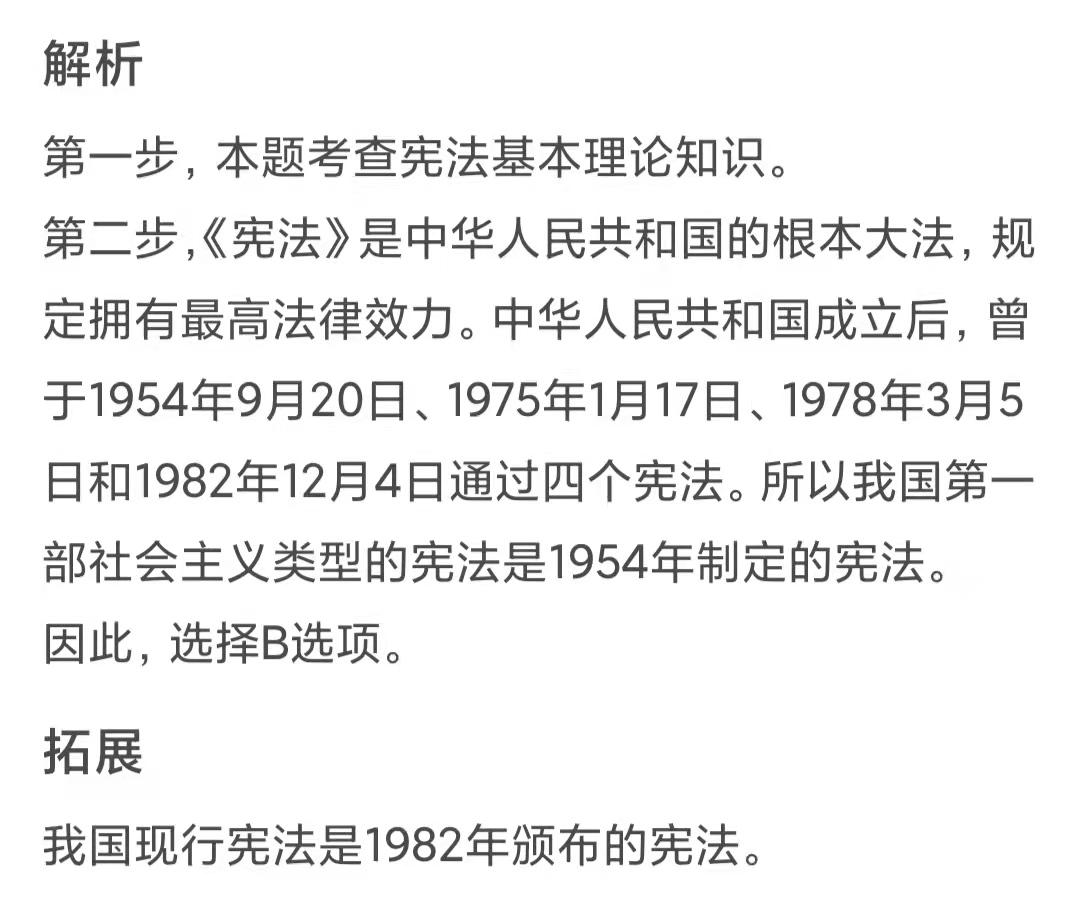 版权声明:我们致力于保护作者版权,注重分享,被刊用文章【我国第一部社会主义类型的宪法(每天学点公共基础知识)】因无法核实真实出处,未能及时与作者取得联系,或有版权异议的,请联系管理员,我们会立即处理! 部分文章是来自自研大数据AI进行生成,内容摘自(百度百科,百度知道,头条百科,中国民法典,刑法,牛津词典,新华词典,汉语词典,国家院校,科普平台)等数据,内容仅供学习参考,不准确地方联系删除处理!;