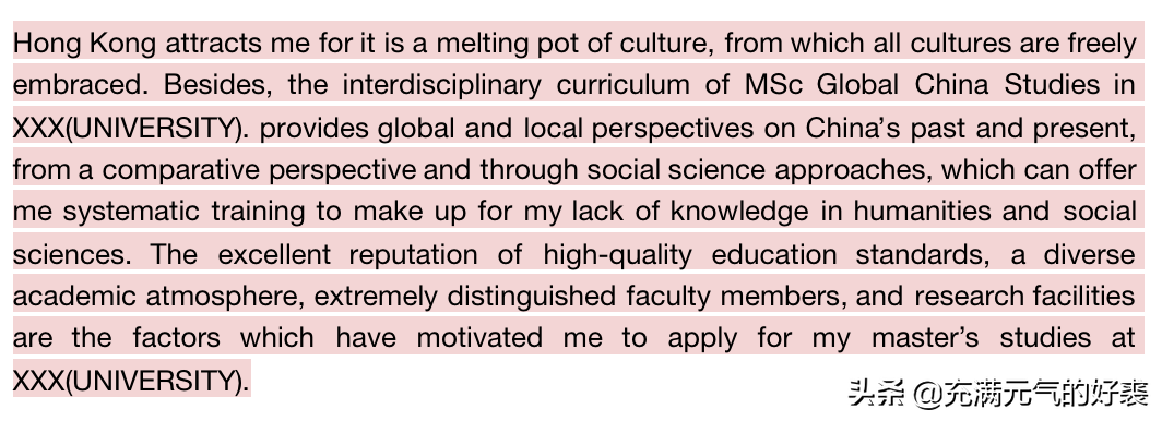 用曾经我们原创的文书进行举例,让大家了解一下申请到香港三大的高质量文书是长什么样子的。