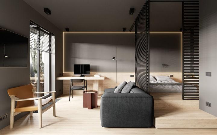 要说高级,那必然少不了高级灰。小户型所有的功能区大都在一个空间里,如何做到有效划分和空间利用,就非常考验设计师的功力了。