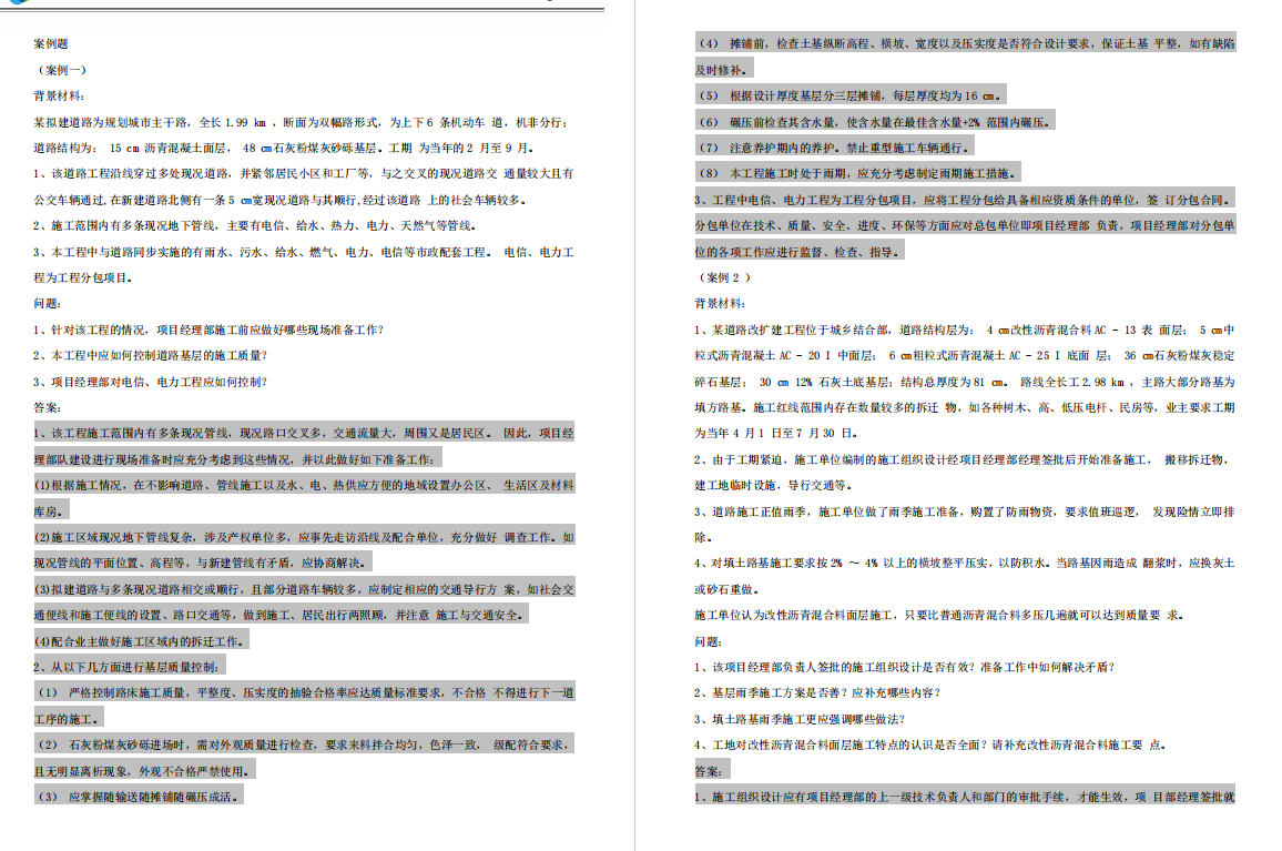 全靠去年备考的时候,我的一个学霸亲戚给了我一套经典市政案例题,说是只要背下来市政实务肯定能过。