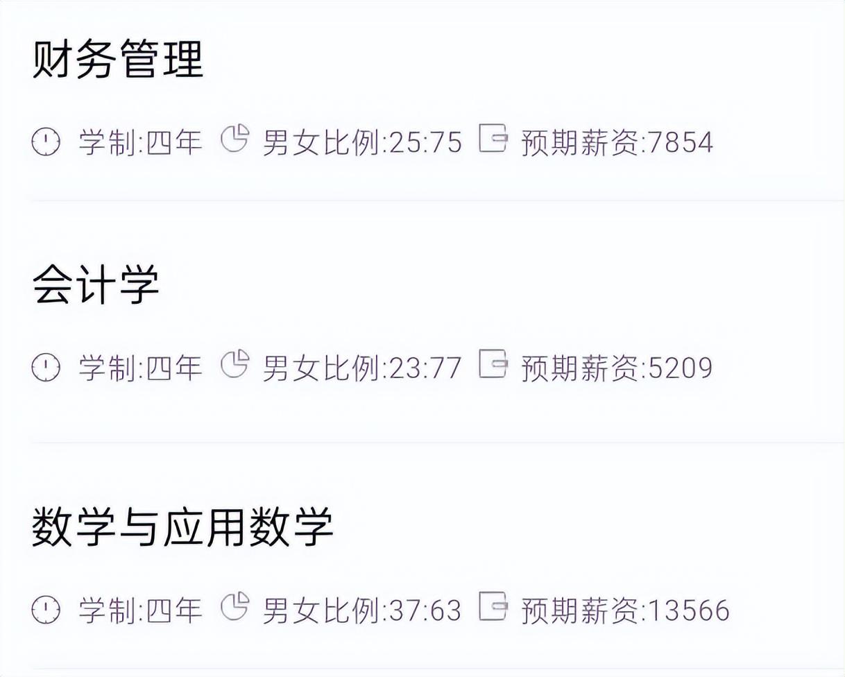 金融学专业也有入选,这一专业女生要比男生报考多,女生要比男生多一半的程度,未来毕业后预期薪资是11268元。