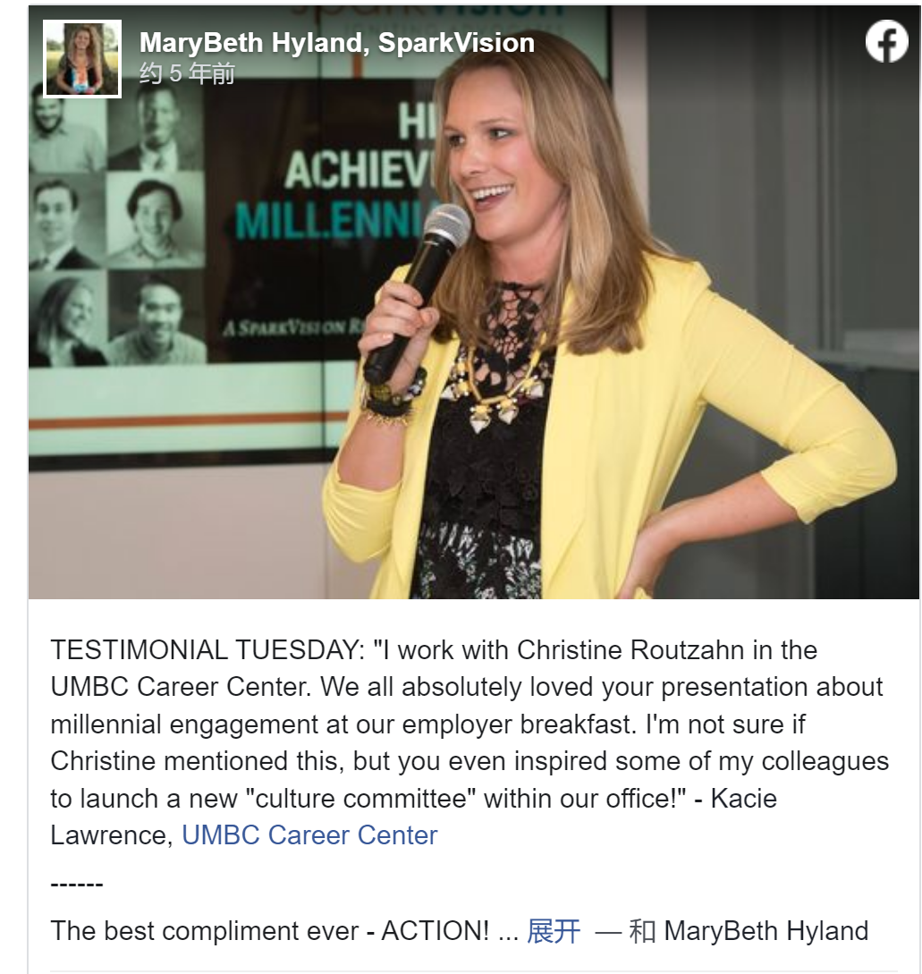 MaryBeth Hyland创办了她的公司Spark Vision,以帮助企业创造和维护协作和包容的办公文化。Hyland和Spark Vision专注于年轻一代,帮助办公室促进员工之间的协作和联系。