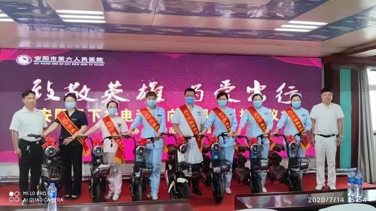 三、2020年6月16日和7月14日,由天下行电动车工厂主办,安阳内黄商会协办的,向援鄂医护人员捐赠电动车仪式,分别在安阳天下行电动车工厂店和市第六人民医院隆重举行。共免费捐赠电动车15辆,发放半价券2500张。宰春成代表安阳内黄商会向援鄂医护人员表示崇高的敬意,向天下行电动车的善举表示钦佩和赞赏。希望受到捐赠的医护工作者,珍惜荣誉,再接再厉,为打赢疫情防控阻击战再创佳绩,再立新功。