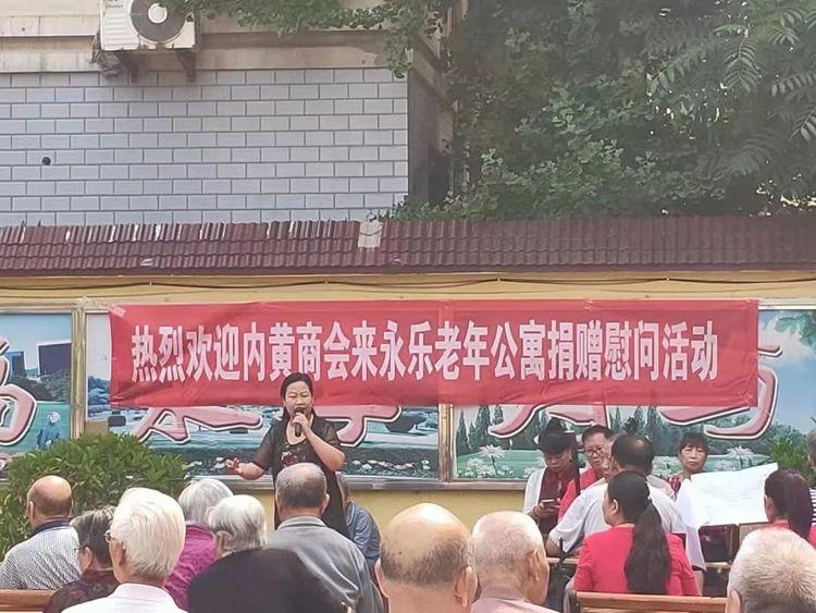 六、7月11日,商会向会员筹款,带着面粉、大米、食用油、西瓜等物资来到永乐老年公寓进行慰问,同时还带去了一台精彩的戏曲节目送去了商会企业家对老人的关心和关爱,受到了老年公寓老人的欢迎和好评。安阳电视台《直播安阳》栏目进行了报道。