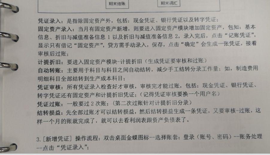 4、操作金蝶录入凭证、审核、过账、结账等操作步骤,记录下来。