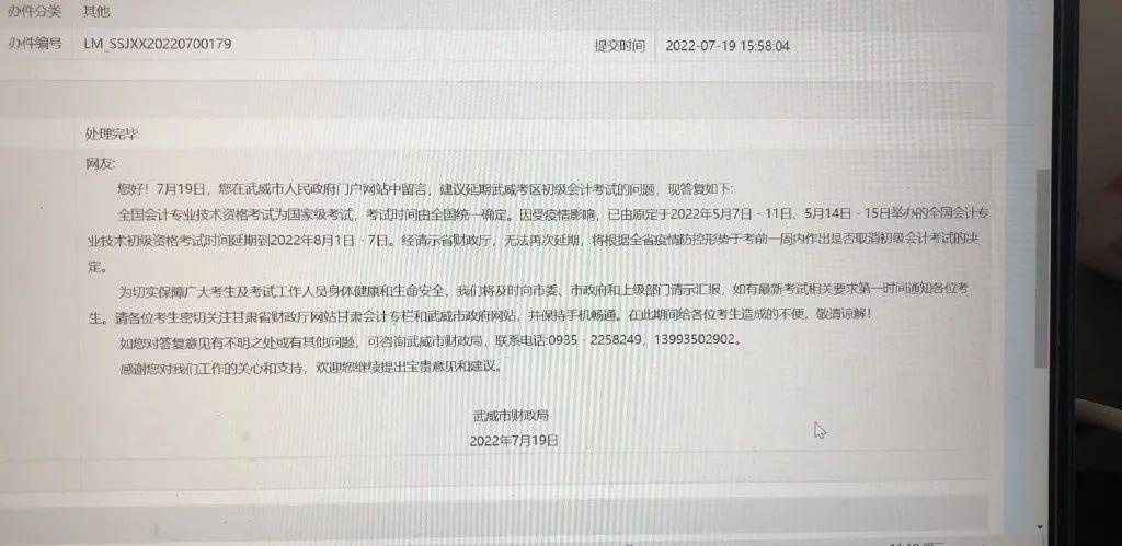 请各位考生密切关注甘肃省财政厅网站甘肃会计专栏和武威市政府网站,并保持手机畅通,在此期间哈各位考生造成的不便,敬请谅解!
