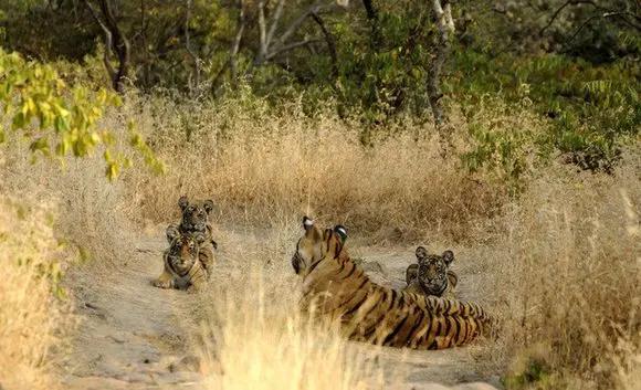 官方的救助方案还未执行,虎王T25-美元男就化身奶爸,接管了幼虎的抚养工作,后来也成功地将两个幼崽养大,保护区还为两个幼虎起名编号,分别为T51-宾妮卡,T52-宾娜多,纪录片中的镜头也相当感人!