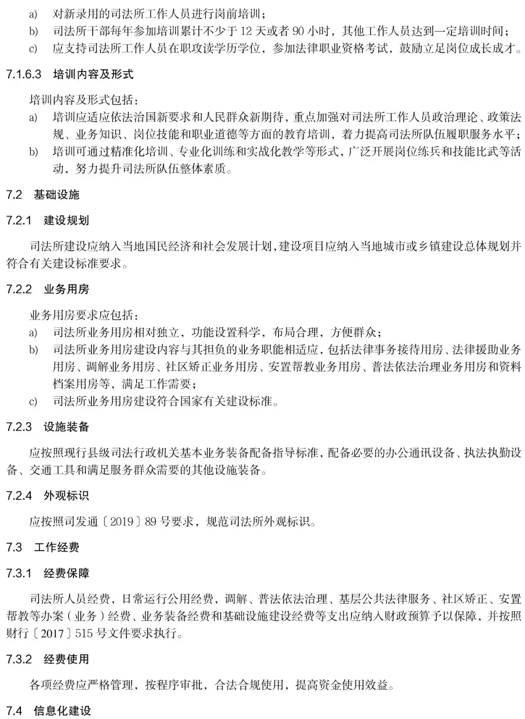 司法所人员经费,日常运行公用经费,调解、普法依法治理、基层公共法律服务、社区矫正、安置 帮教等办案(业务) 经费、业务装备经费和基础设施建设经费等支出应纳入财政预算予以保障,并按照 财行〔2017〕515 号文件(《司法行政机关财务管理办法》)要求执行。
