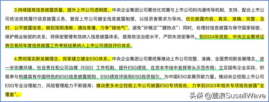 《工作方案》将ESG信息披露要求聚焦于央企控股上市公司,首次提出了央企ESG信息披露目标的具体时间截点和覆盖率要求,并强调了披露规则的中国化本土化考虑。由此表明:央企ESG信披时代已至!