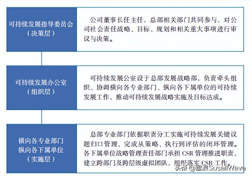 健全企业管理机制。做好顶层设计,并真正将ESG理念持续落实到央企下属的分公司及子公司。央企具有体量大、领域广、数量多的特点,将ESG理念自上而下彻底贯穿央企需要更多努力。部分央企的实践值得借鉴,如中国移动设立可持续发展指导委员会,构建了高层深度参与、横向协调、纵向联动的管理组织体系;制定下发相关规章制度文件;建立完善可持续发展政策体系、内控制度以及管理机制和流程等。