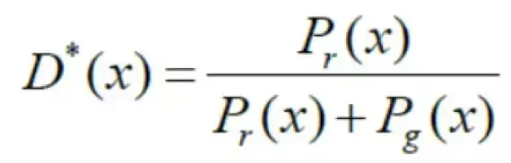 其中pr为真实分布,pg为生成分布。令上式关于D(x)的导数为0,可以得到D(x)的全局最优解为: