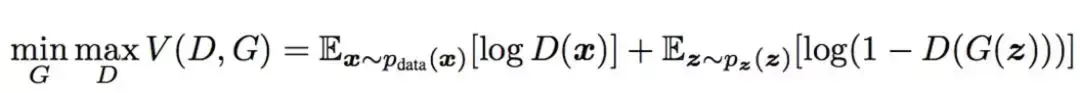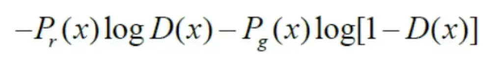 设z为随机噪声,x为真实数据,生成式网络和判别式网络可以分别用G和D表示,其中D可以看作一个二分类器,那么采用交叉熵表示,可以写作: