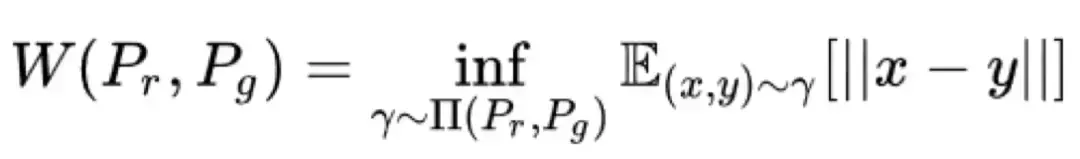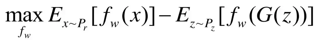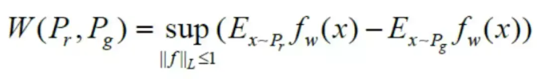 为D(x)与D(G(z))的分布,其中x即为输入的样本图片,G(z)为生成图片,那么真实分布pr与生成分布pg之间的Wasserstein距离如下