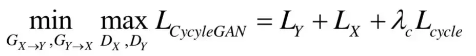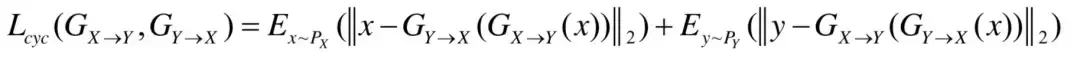 设X,Y为两类图像,px,py为两类图像间的相互映射。CycleGAN由两对生成器和判别器组成,分别为