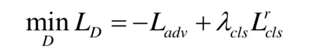 其中,c′为原始图像对应的类别。如此,可以得到判别器的目标函数