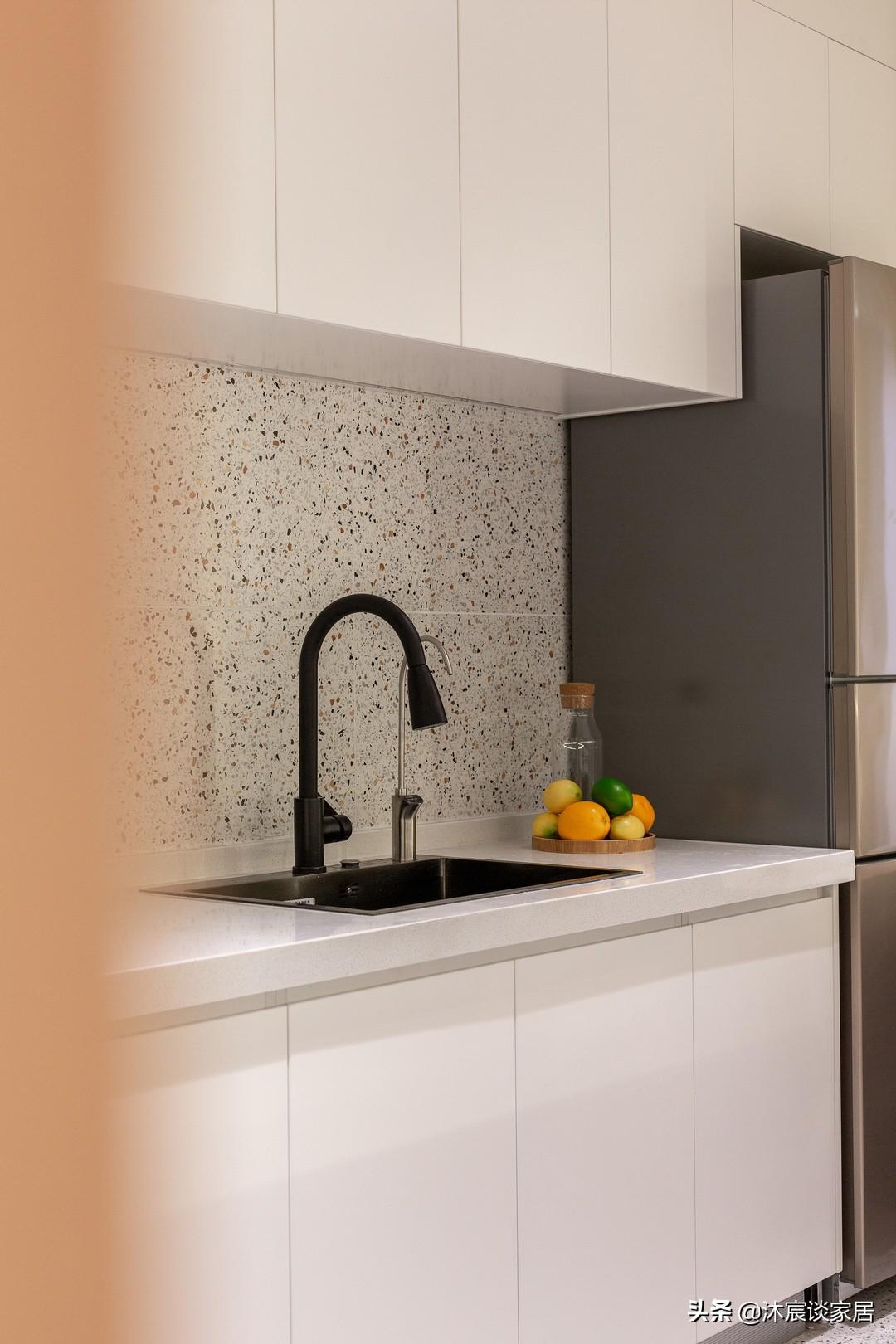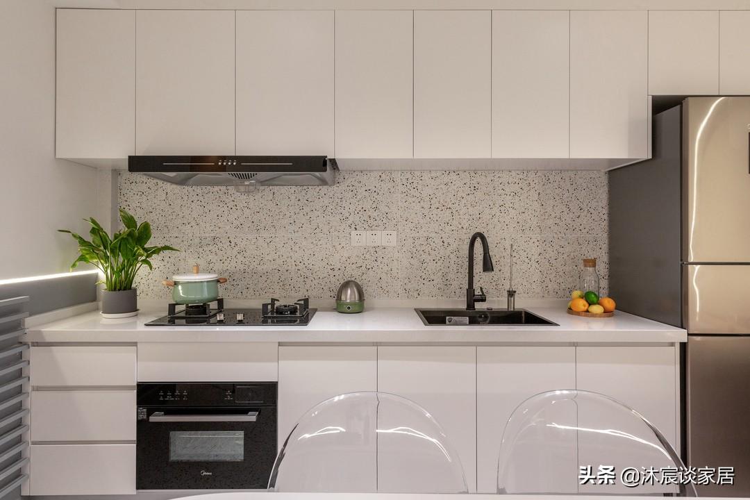 至于厨房放到这里,更是合理,定制时遵守“动线合理、操作便利、收纳充足”三大原则,让迷你宅成为小区装修样板。