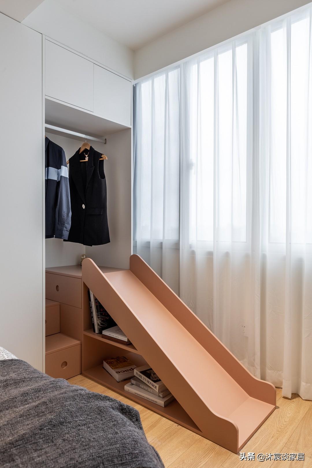 除了有休息功能外,还利用阳台位置给儿童打造了一个小滑梯,白天让她尽情在这里玩。